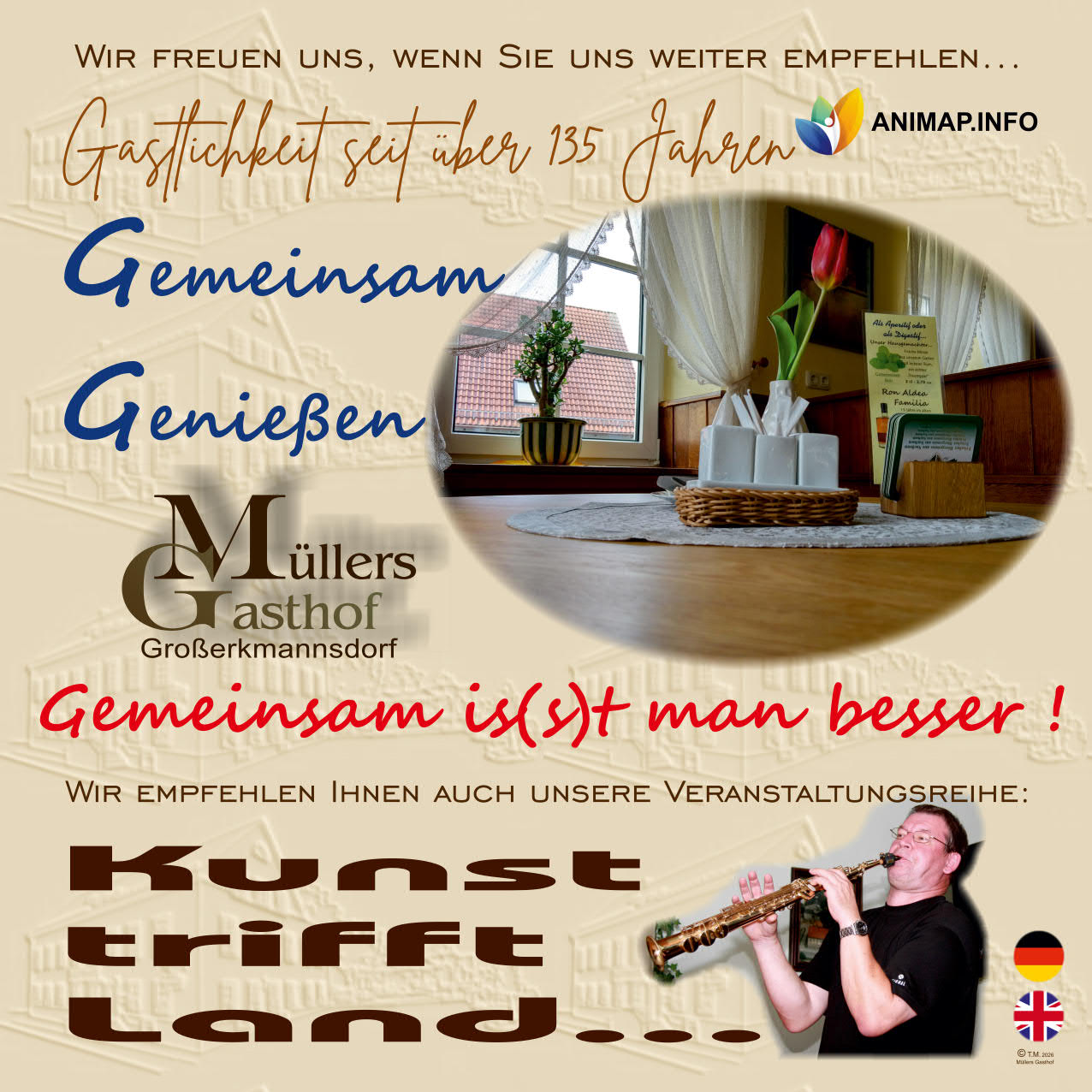 Drei gemütliche, renovierte Gasträume - individuell eingerichtet - variabel bestuhlbar,